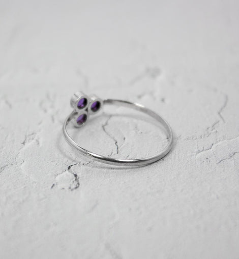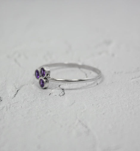 An absolute must-have ring for a ring stack. This dainty amethyst ring is fashionable and trendy. It can be worn alone to highlight the brilliant amethyst stones too.