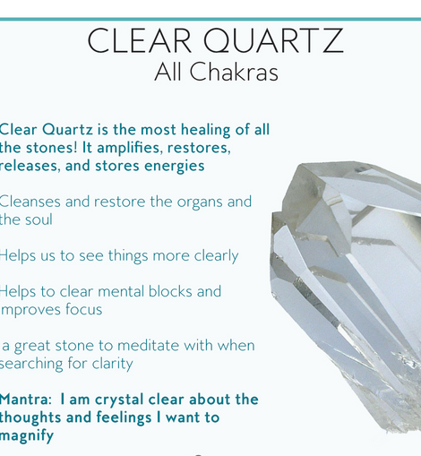 Crystal Quartz is a powerful healer that can be used in ALL CHAKRAS and influences ALL ZODIAC signs!