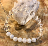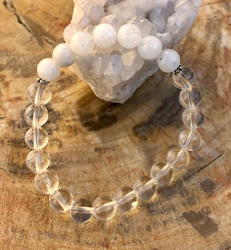 Rainbow Moonstone & Brazilian Crystal Quartz stretch bracelet! This is an all natural, handmade bracelet using only genuine crystals and gemstones.