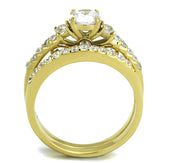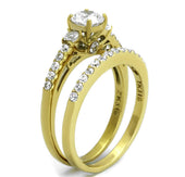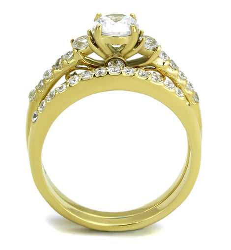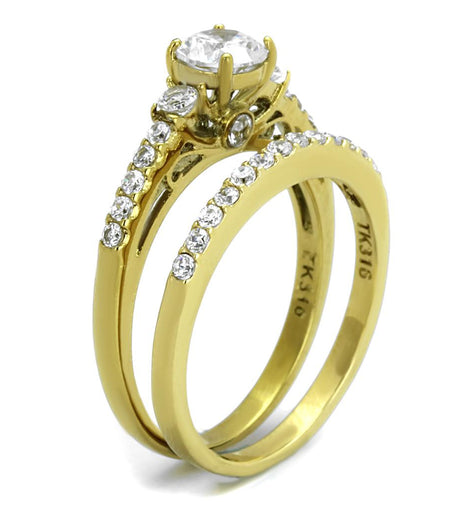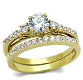 Women, Ring, Stainless Steel, IP Gold(Ion Plating), Cubic Zirconia, Clear